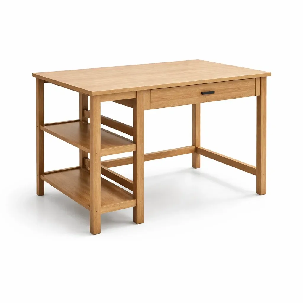 Bureau en Bois avec Étagères et Tiroir