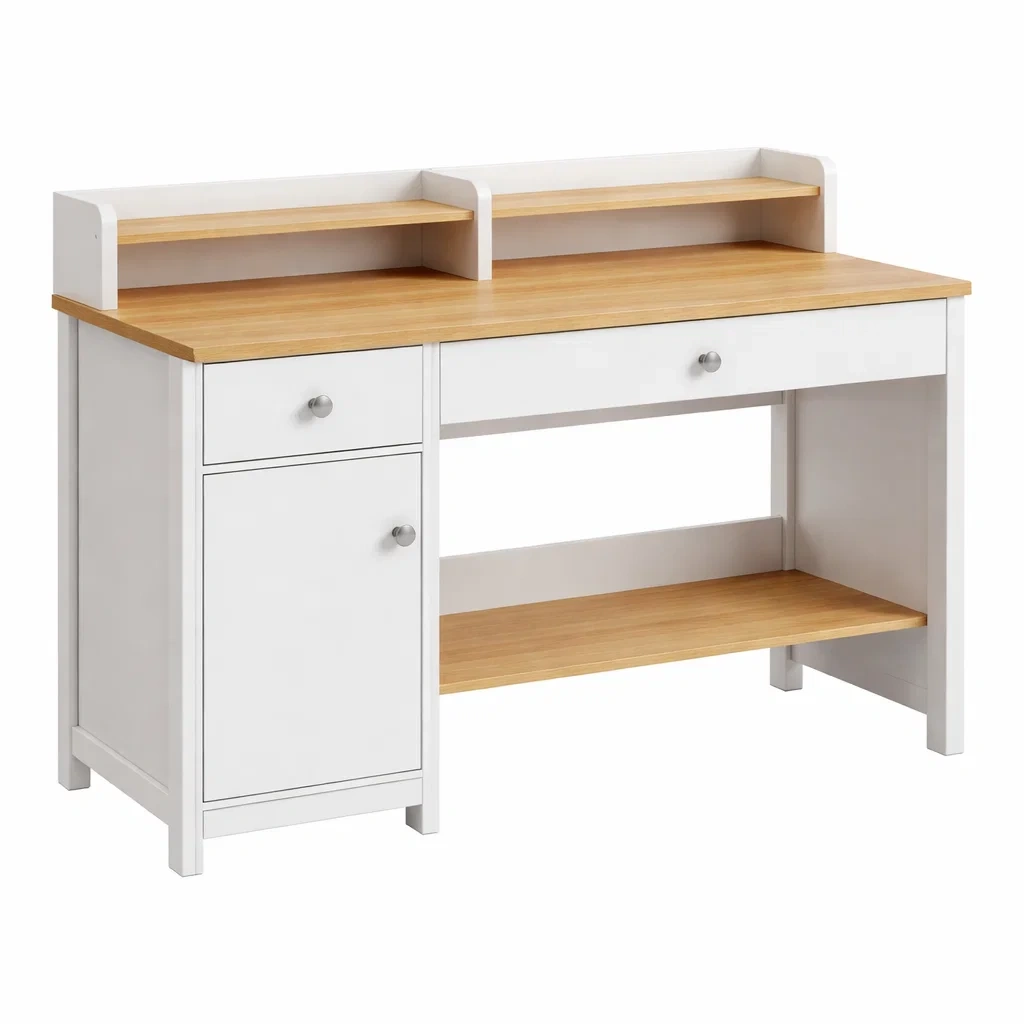 Comprend deux tiroirs, une porte et deux étagères ouvertes pour un rangement pratique.
