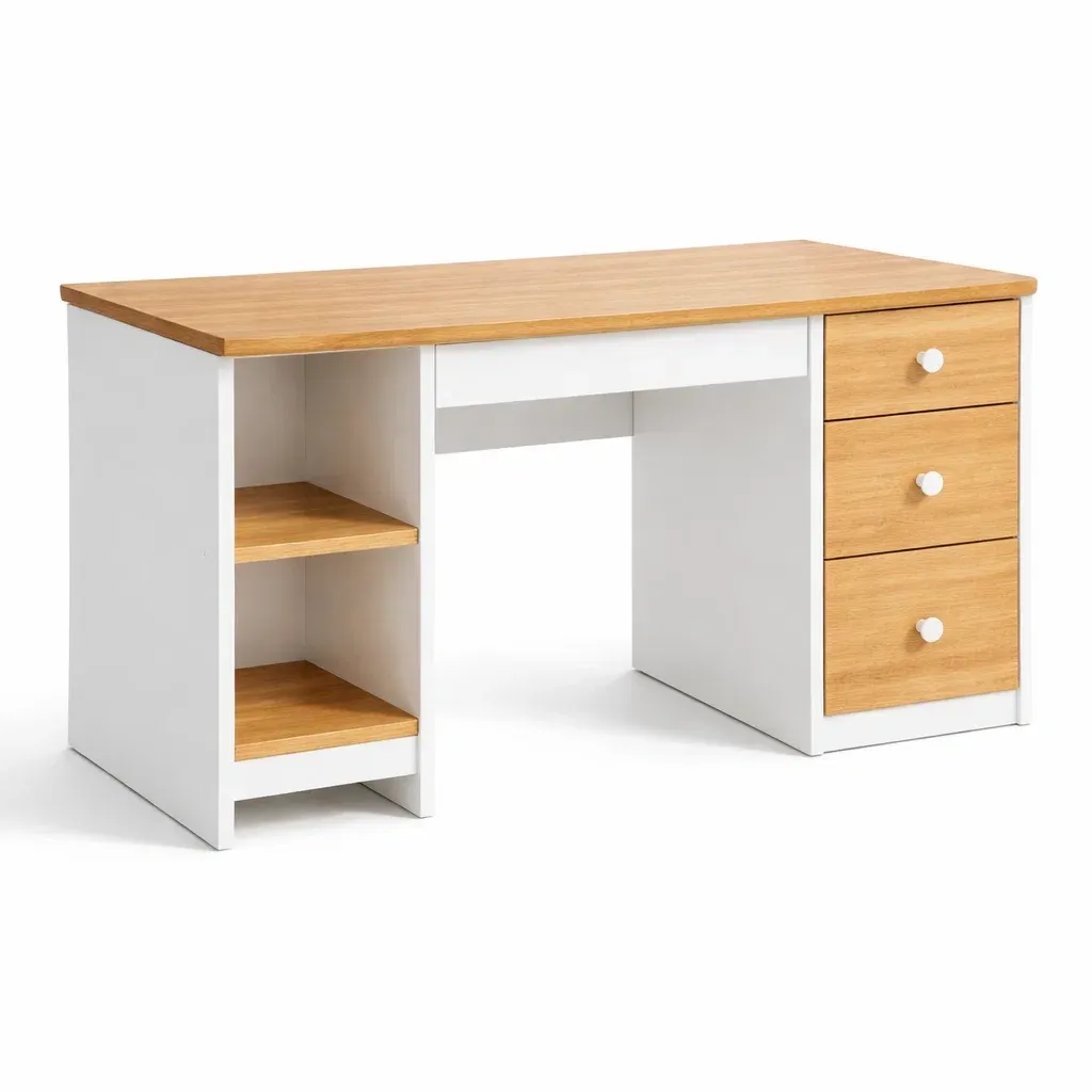 Bureau en Bois Mélaminé Chêne et Blanc 140x60x75 cm